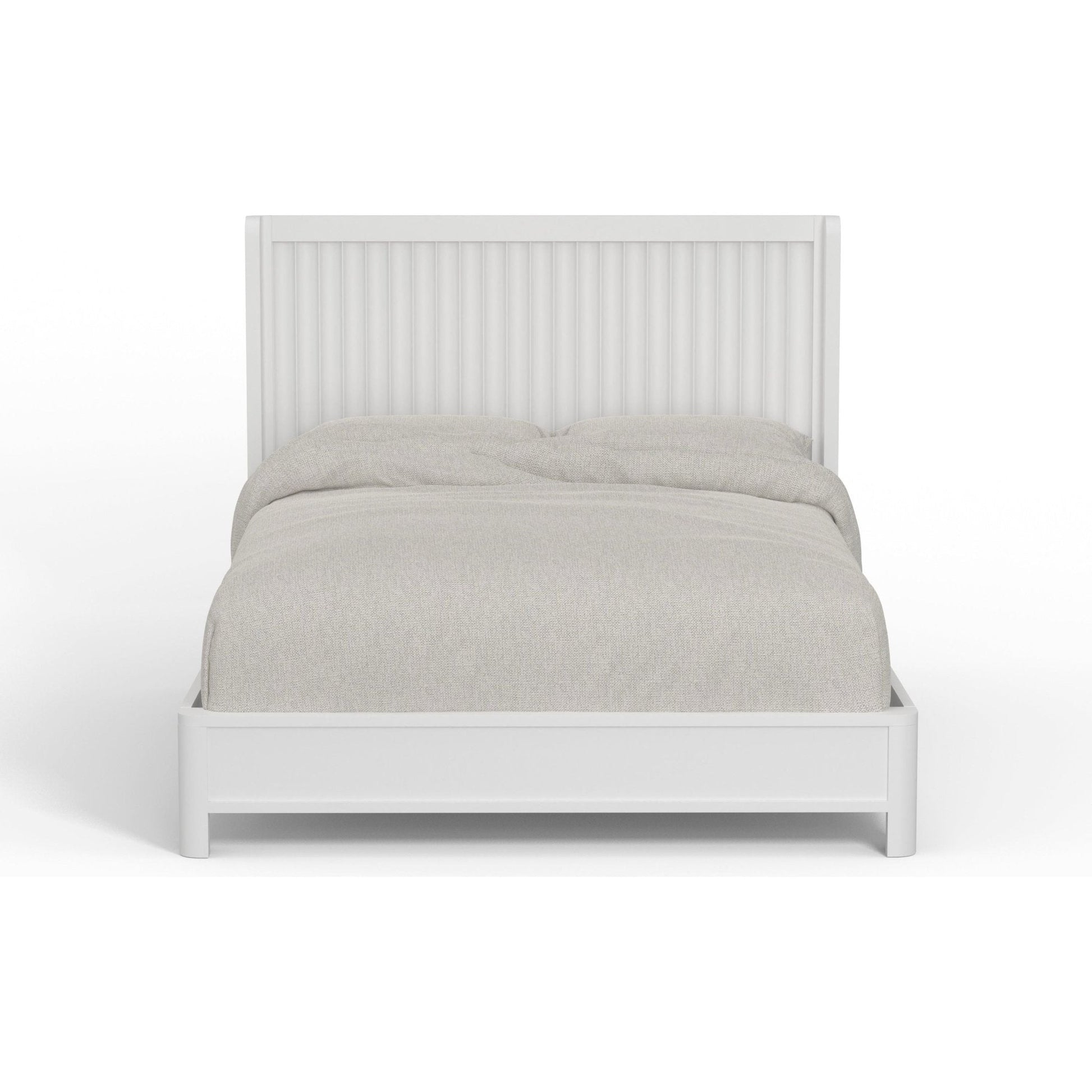 Stapleton is a timeless and versatile design that provides a perfect complement to your bedroom. Handcrafted in Indonesia from Mahogany Solids and Veneers, the beautiful white finish works with a variety of décor options. Sturdy construction means your furniture will be durable and last for years. The bed makes a real statement when you walk into the room. The panel headboard features a distinctive scalloped motif that sets it apart. The bed is available in Queen, California King, Eastern King, and Full Size and requires a box spring.