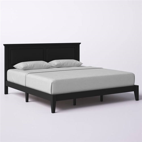 Traditional Solid Wooden Platform Bed Frame with Headboard in Black