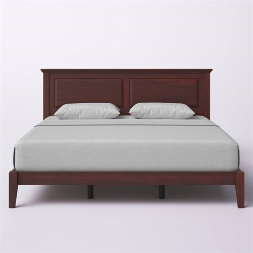 Traditional Solid Oak Wooden Platform Bed Frame with Headboard in Cherry