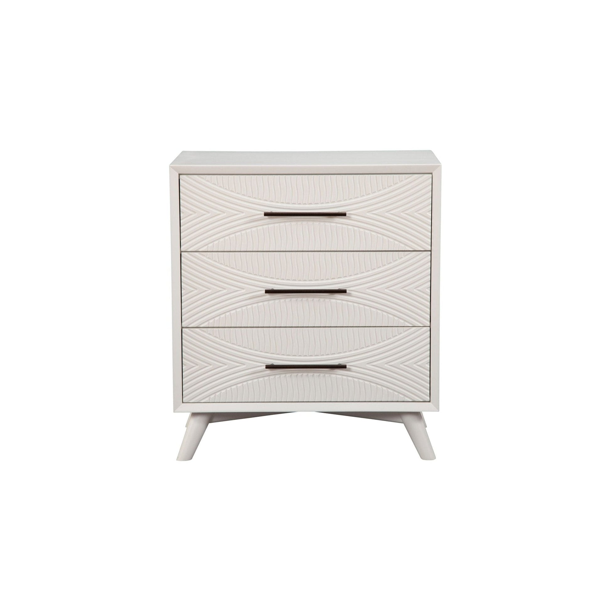 Classic White finish. Quality crafted with Mahogany Wood Solids & Veneer. Fully assembled. French & English Dovetail drawer construction. Felt lined top drawer(s). Ball bearing metal drawer glides. 3 drawers for storage. Alpine Furniture knows that certain things never go out of style. Their furniture products are designed and constructed with classic English and/or French dovetailing that provides a sturdy result and an unbeatable aesthetic. For over 20 years, Alpine has provided its customers with a variety of wood products for the bedroom, dining room, and living room. Each piece is designed to meet the highest-quality standards of design, durability, and dependability. Customer satisfaction is of the utmost importance to Alpine. They have altered their designs over the years based on customer input in order to attain excellence in all areas.