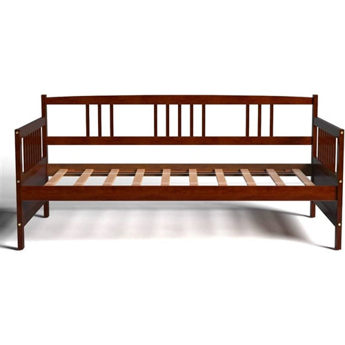 - Twin size 2-in-1 Wood Daybed Frame Sofa Bed in Brown Cherry Finish
