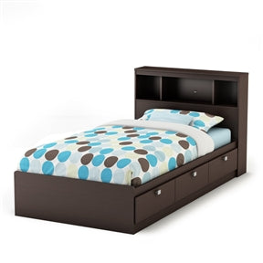 Twin size Contemporary Bookcase Headboard in Chocolate Finish