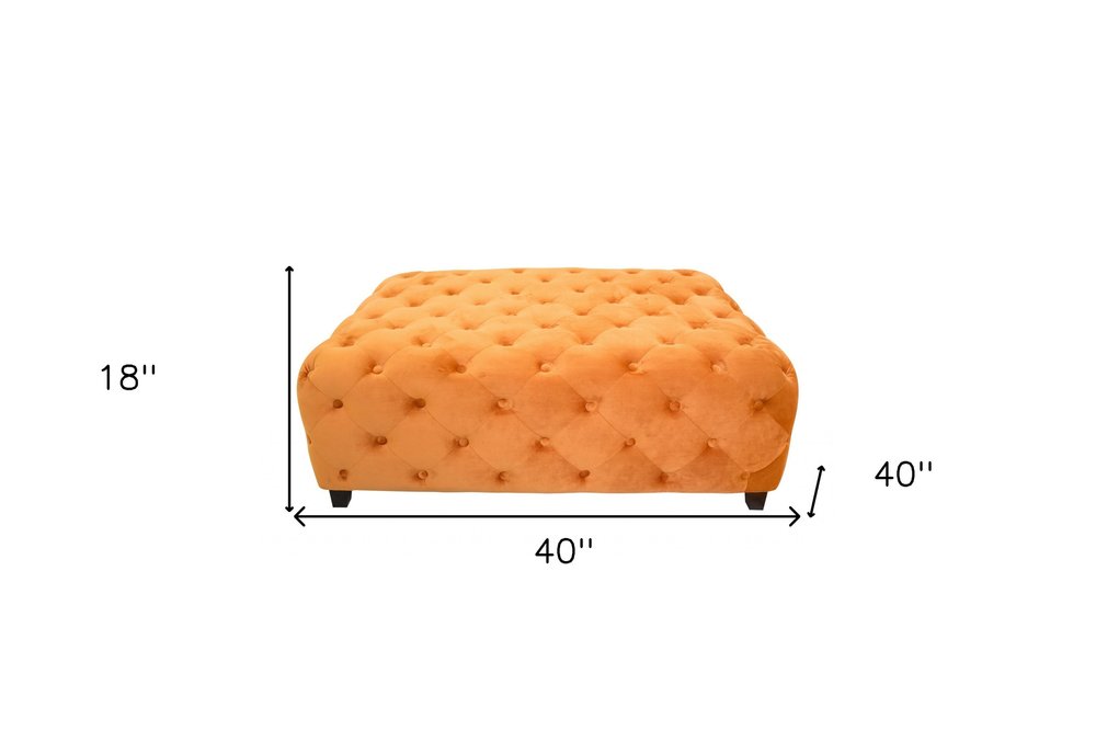 40" Orange and Brown Fabric and Solid Wood Square Coffee Table