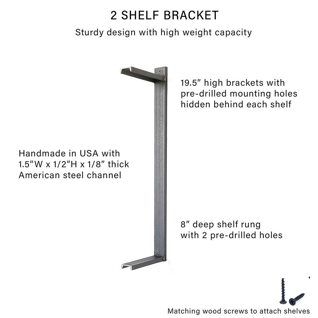 We design and manufacture our wall mounted bookshelves in the USA. Our shelving units have the highest quality, American made steel, premium solid wood, and commercial grade finishes. The wood bookshelves can be ordered in any solid length up to 96" long. The heavy-duty shelf brackets are custom fabricated from 1.5" solid American steel channel and finished with an extremely durable powder coating.