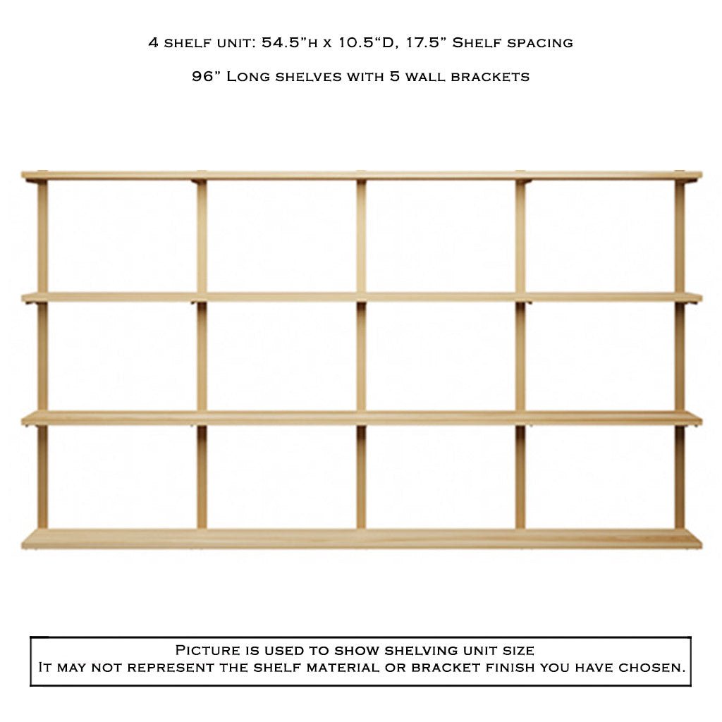 We are proud to design and manufacture bookshelves in the USA with the highest quality, American made steel, premium solid wood, and commercial grade finishes. The wood can be ordered in any length up to 96" long. The wall mount shelf brackets are custom fabricated from 1.5" solid American steel channel and finished with an extremely durable powder coating.