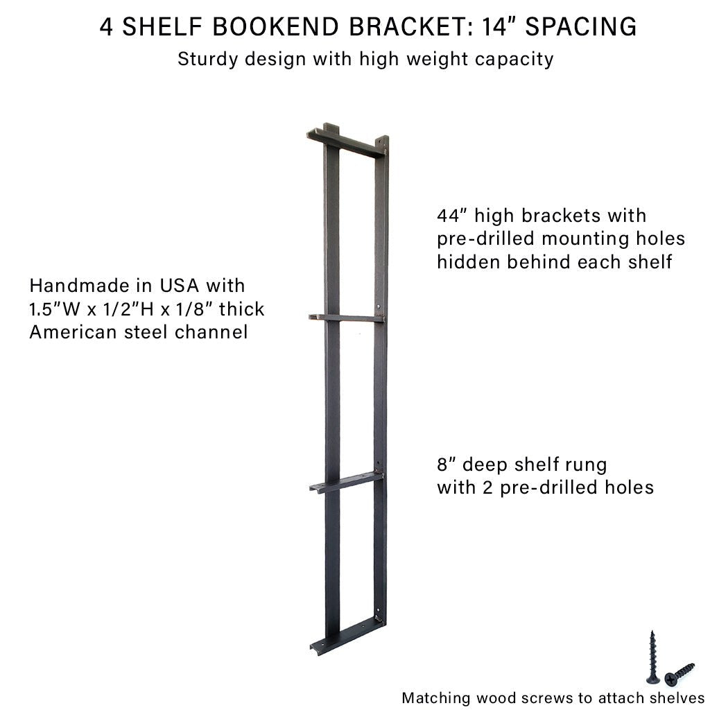 Create the bookshelf wall of your dreams using our wall mount shelving unit with bookend brackets. By integrating an additional metal detail on the outside shelf brackets, we created a beautiful bookend that is architectural and functional. Not only does it increase the strength of the brackets, it prevents your books and items from falling off. This will maximize your storage on your floating shelves, as you will not require separate bookends.