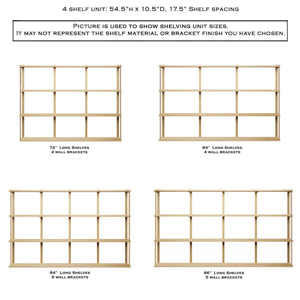 Personalize your custom 4 shelf unit to perfectly fit your aesthetic by choosing from our 4 different wood options and 3 different bracket finishes. No matter the combination, our shelving will enhance your space with quality materials, sure to last a lifetime.