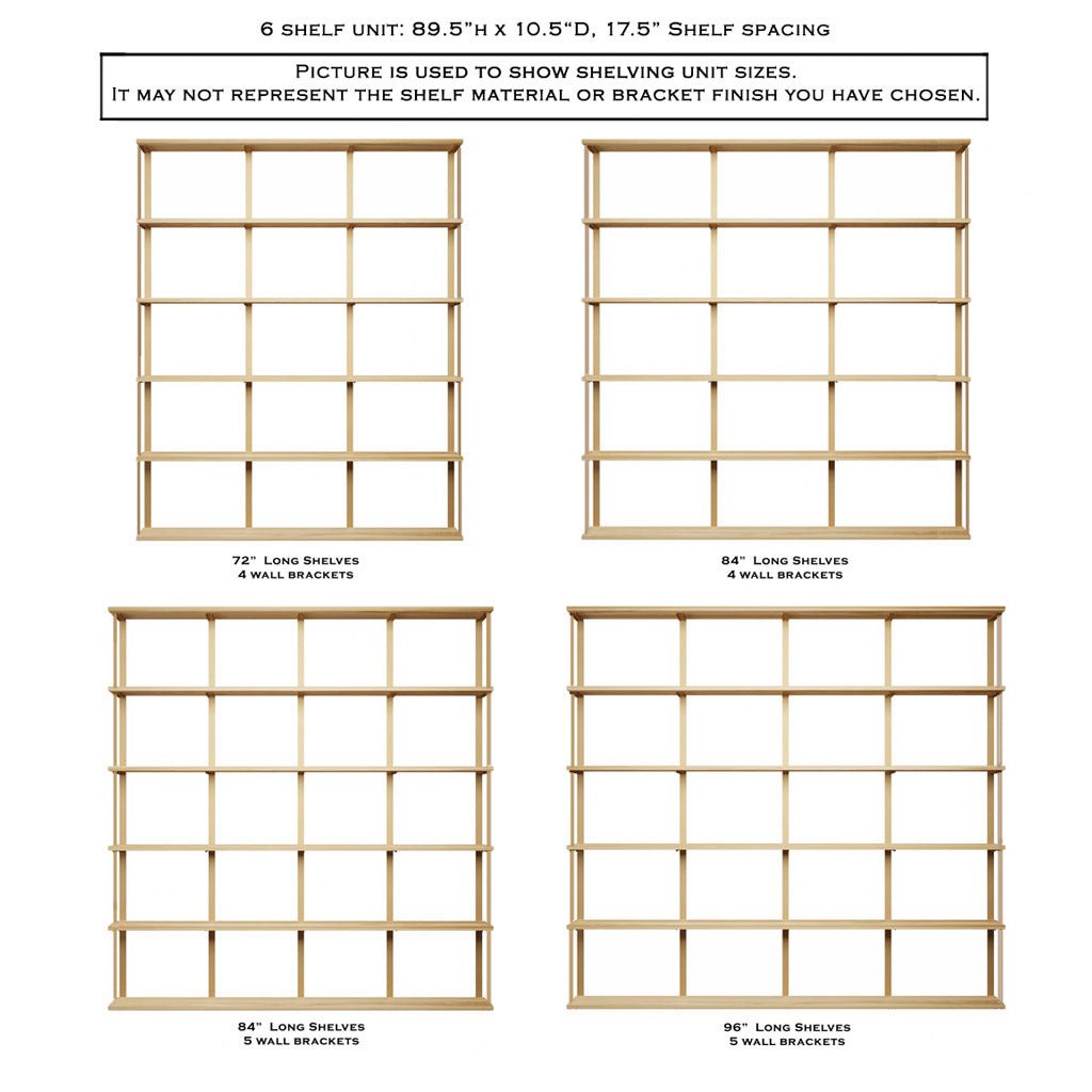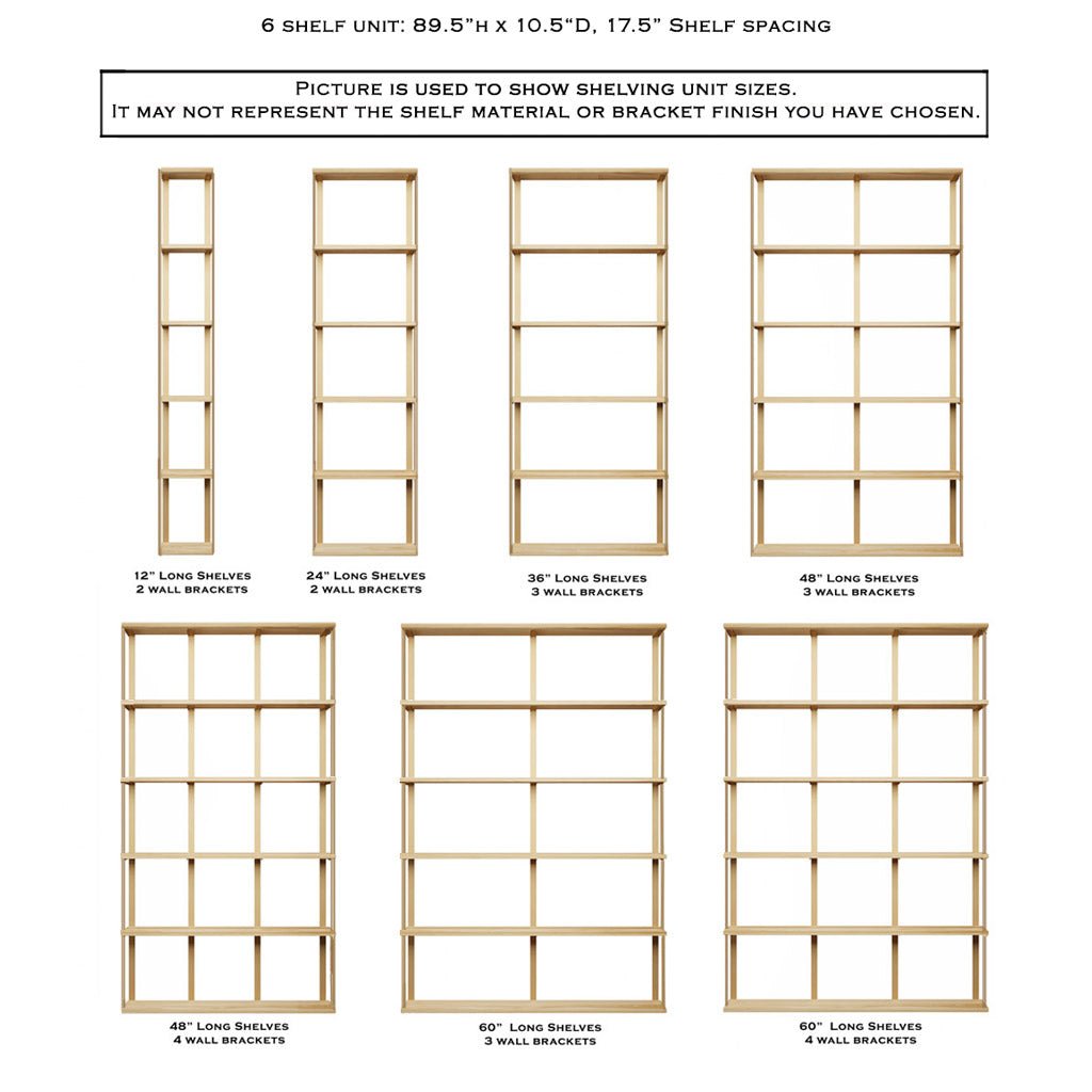 Wall Mount 6 Shelf Unit with Bookends: 89.5" H