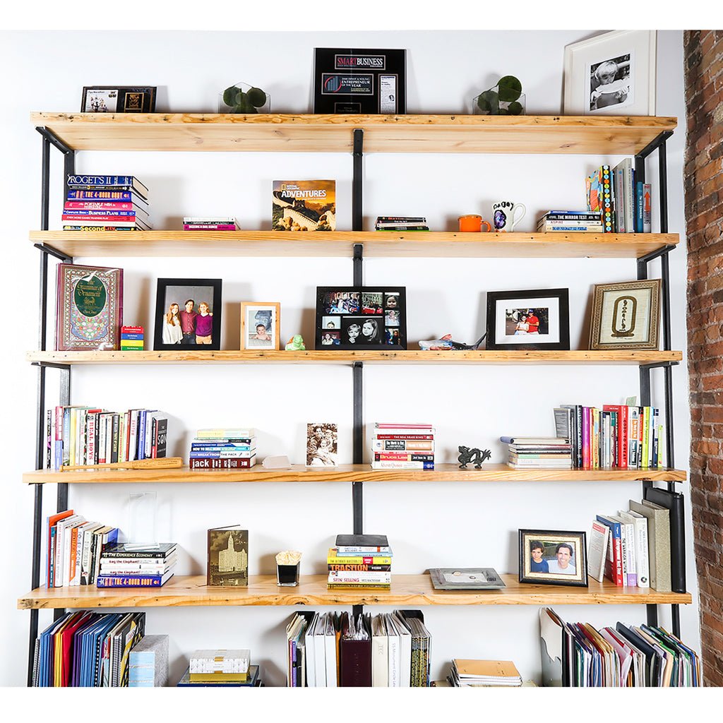 Personalize your custom shelving unit to perfectly fit your aesthetic by choosing from our 5 different wood options and 3 different bracket finishes. No matter the combination, our shelving will enhance your space with quality materials, sure to last a lifetime.
