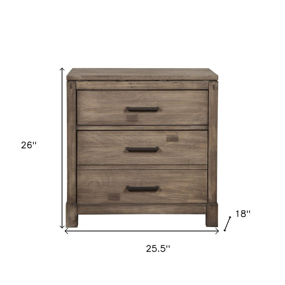 26" Gray Solid and Manufactured Wood Two Drawer Nightstand