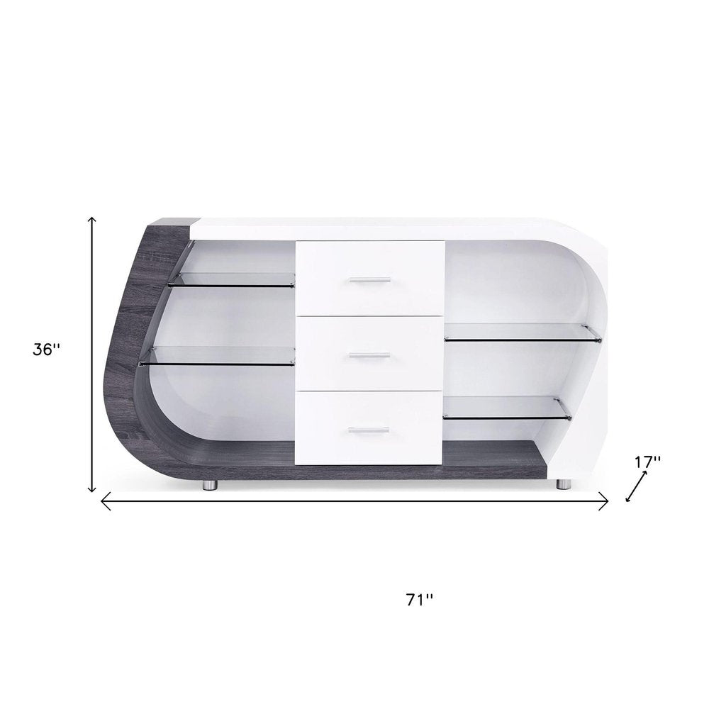 White And Grey Multi Tone Buffet With 3 Drawers
