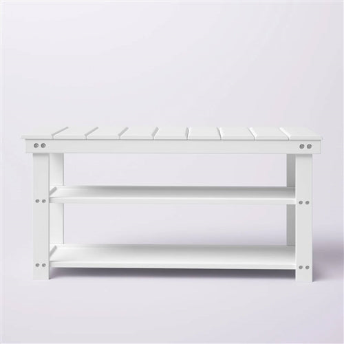 White Slatted Wood 2-Shelf Shoe Rack Storage Bench For Entryway or Closet