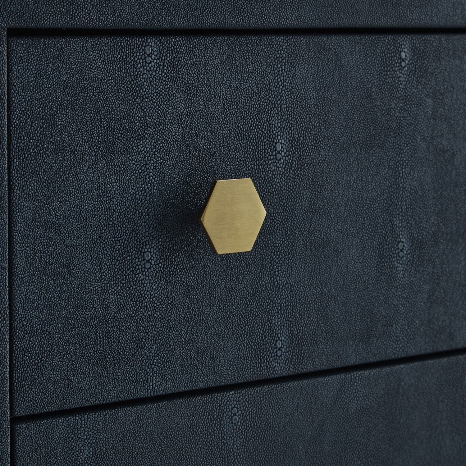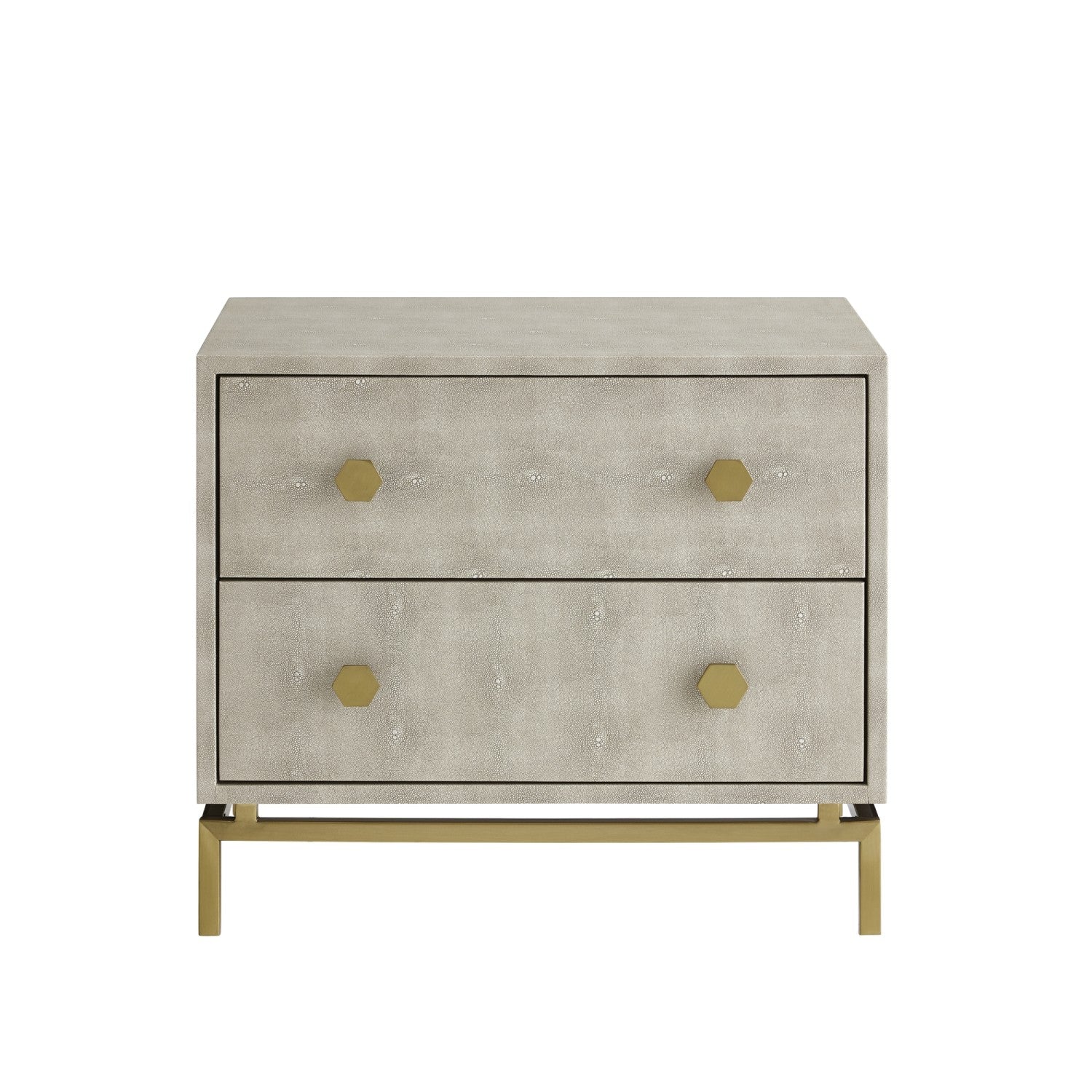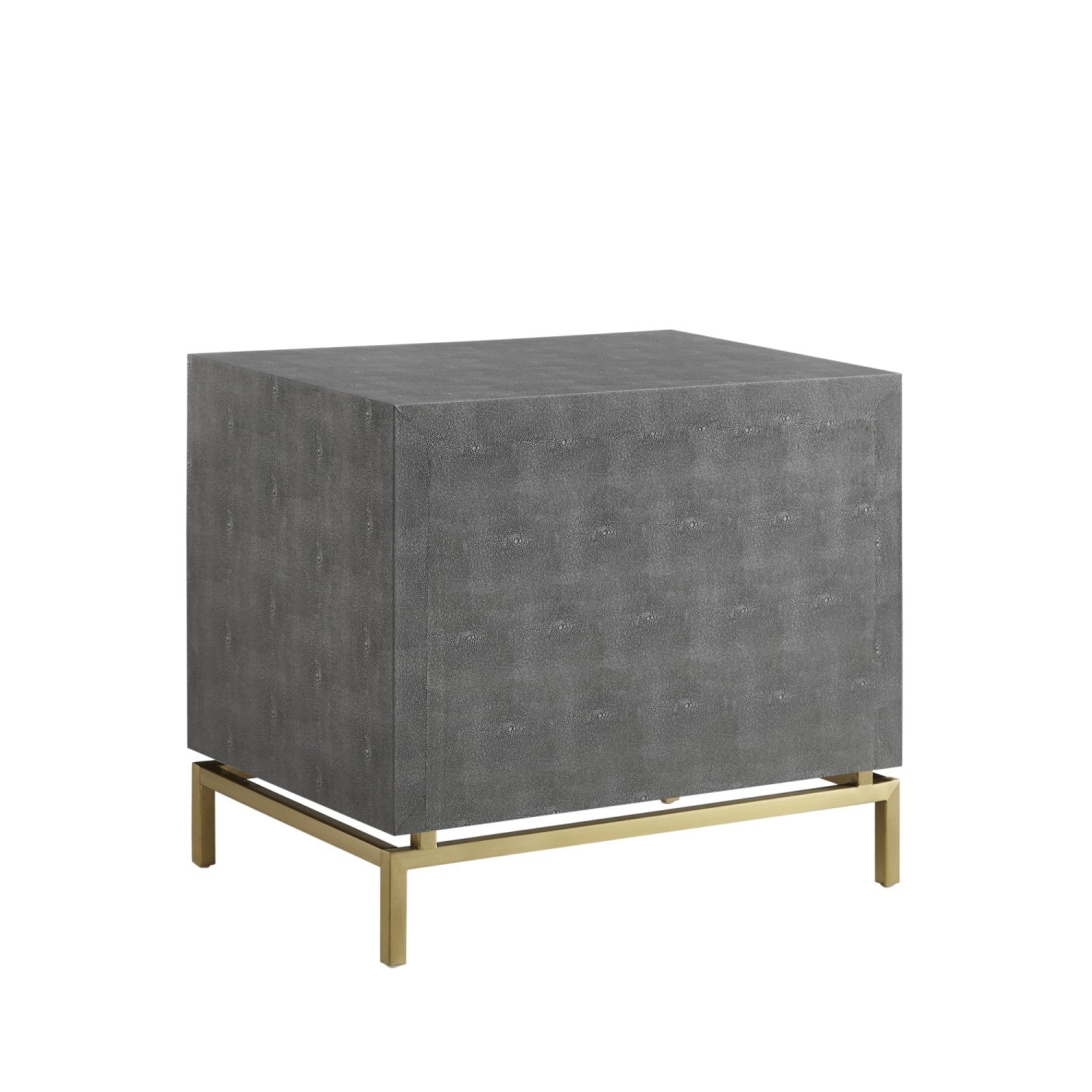 - PREMIUM QUALITY MATERIALS - Our side table is covered in faux shagreen. The pebbled texture is perfect for houses with earthy tones. It's made from durable MDF with a brushed metal base. Also, the brushed octagon knobs add uniqueness.