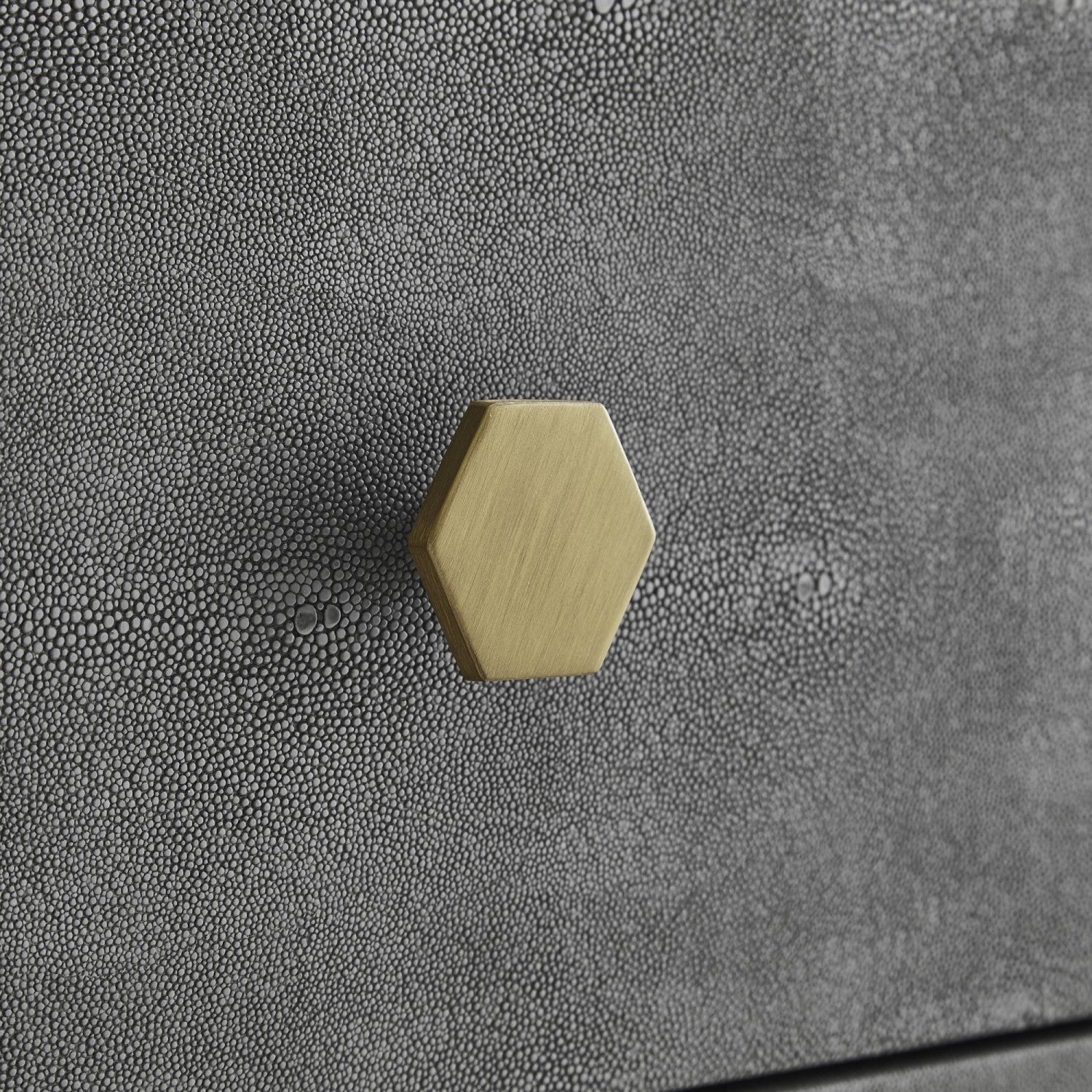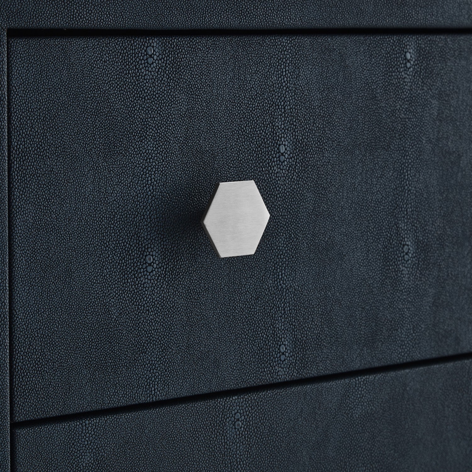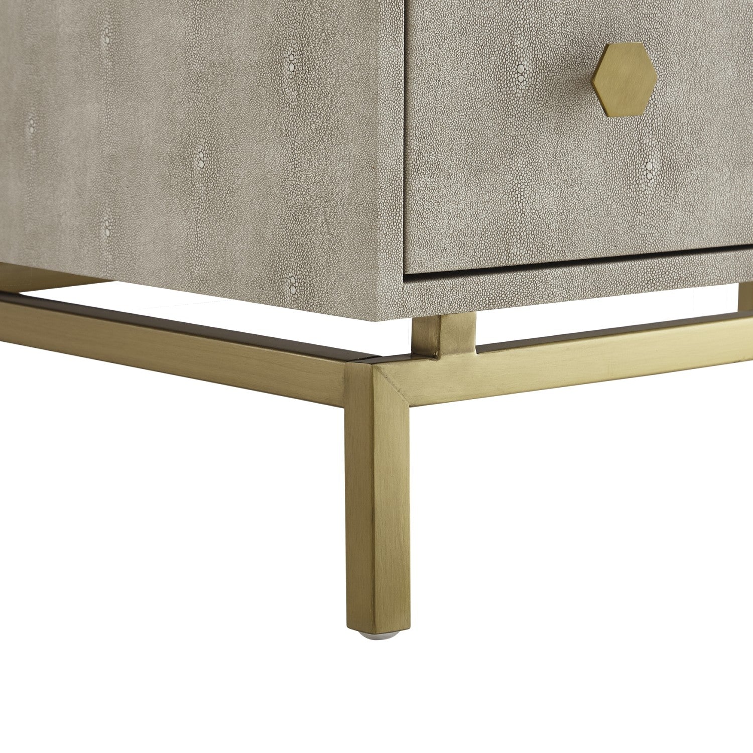 - FABRIC & MATERIALS: Faux Shagreen, MDF, Stainless Steel